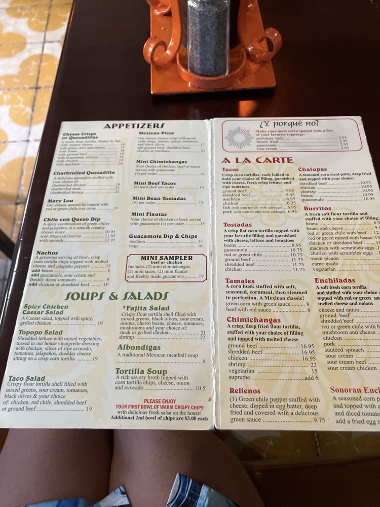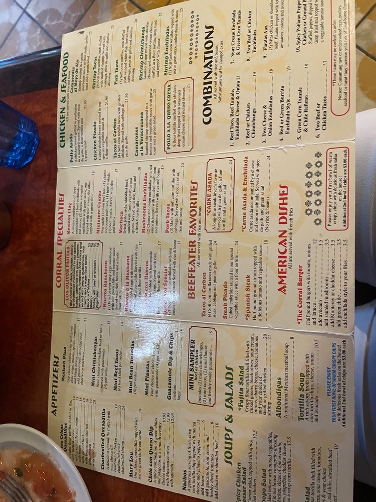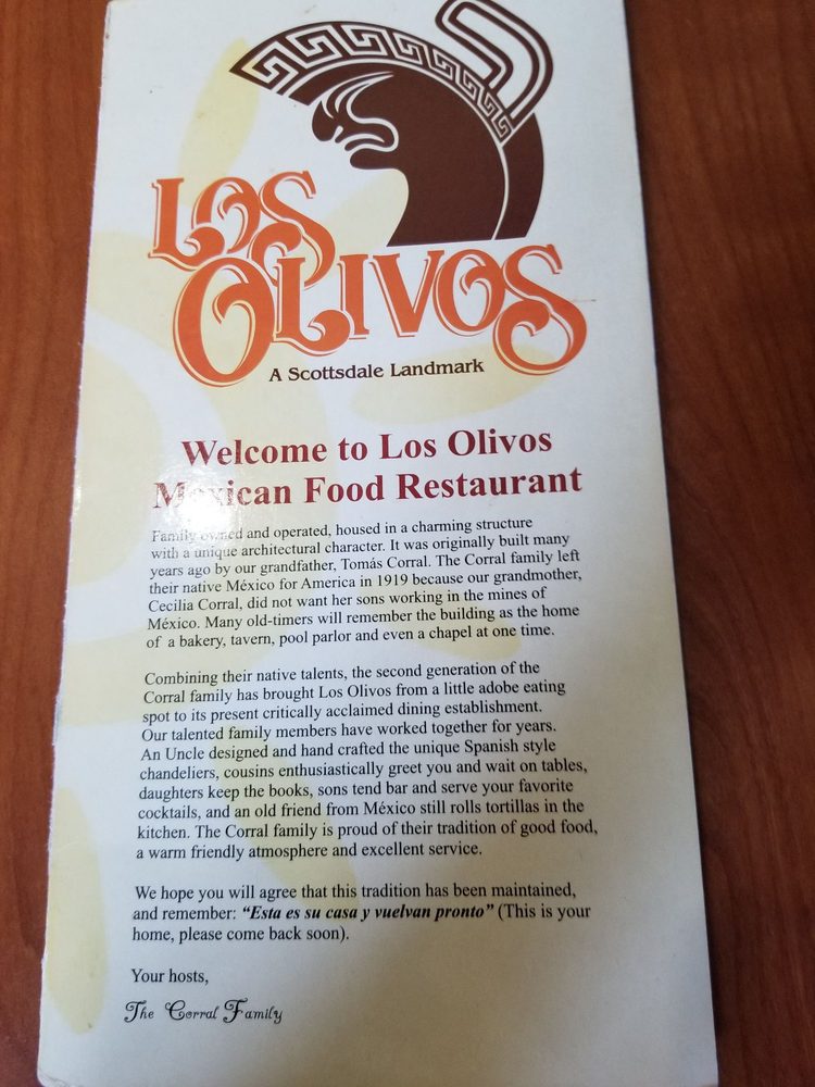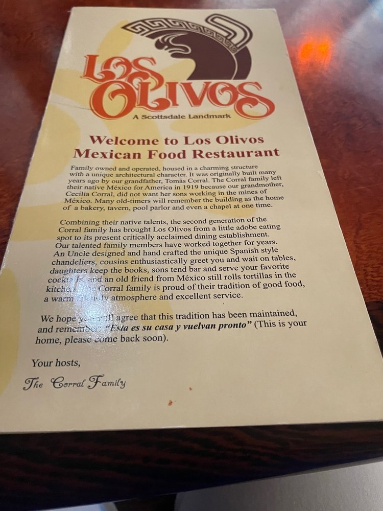 Introducing the menu at Los Olivos Mexican Patio, a Mexican restaurant located in Scottsdale, Arizona. Known for its vibrant atmosphere and delicious food, Los Olivos offers a range of options for its customers. From appetizers like charbroiled quesadillas and spicy chile con queso dip to soups and salads featuring spicy chicken Caesar salad and topopo salad, the menu is diverse and flavorful. A la carte options include traditional favorites like tacos, tostadas, and tamales. Customers rave about the food and service, with reviews praising the tasty dishes and attentive staff. The restaurant's rich history, family-owned for three generations, adds to its charm. If you're in the mood for classic Tex-Mex fare served in a colorful setting, Los Olivos Mexican Patio is a must-visit spot in Old Town Scottsdale.